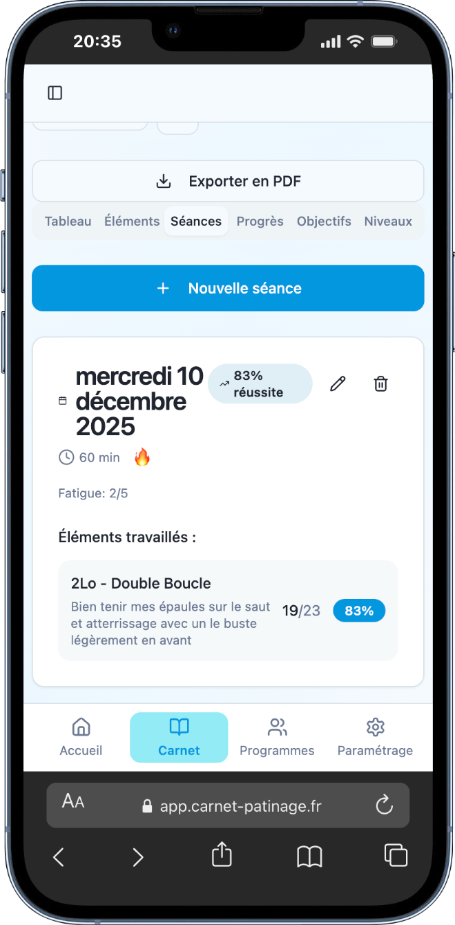 Découvrez le Carnet de Patinage : un outil complet pour suivre vos entraînements, progresser plus vite et atteindre vos objectifs en patinage artistique.